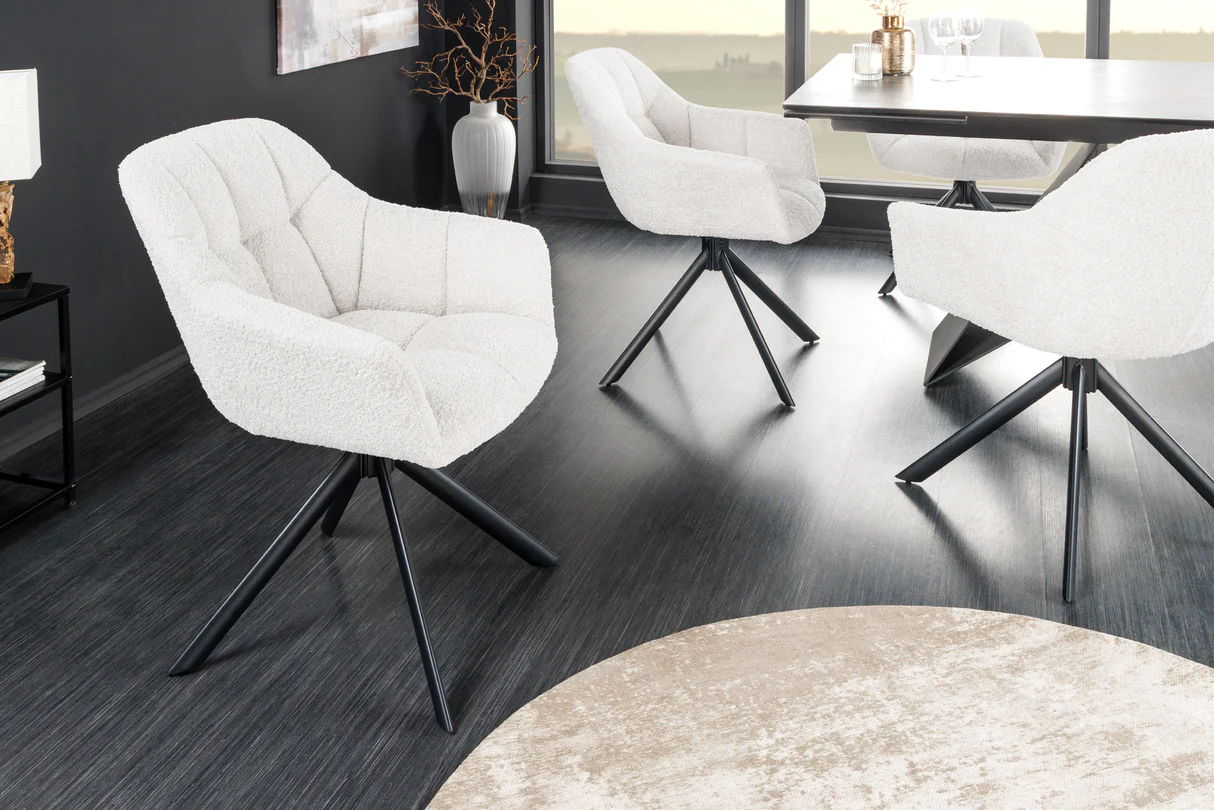 Ronde moderne eetkamertafel met krasbestendig tafelblad van glas/keramiek. De tafel is gecombineerd met een zwarte metalen kruispoot met zwarte poedercoating. Afmeting van de tafel ØxH: 119 x 75,5 cm Kleurcombinatie: Tafelblad wit met accenten (type akranes) Poten: zwart Materialen: Tafelblad: veiligheidsglas met keramiek toplaag Onderstel: metaal poedercoating