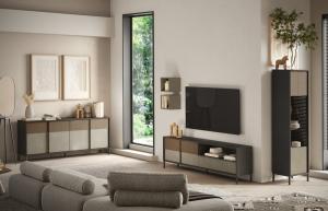 Modern TV-lowboard in de kleurcombinatie eikenlook & zwart. Door gebruik van twee klepdeuren en één lade biedt het meubel veel opbergruimte.  De eikendecor kleur gecombineerd met het moderne zwart geeft het TV- meubel een elegante en moderne uitstraling.  Dit meubel is verkrijgbaar in de afmeting bxdxh: 150 x 40 x 40 cm Kleurcombinatie: eikenlook / zwart  Materialen: geperst hout voorzien van decorafwerking  Â