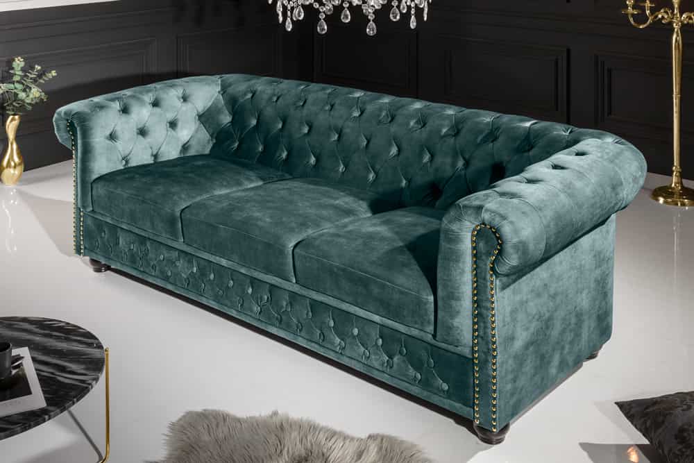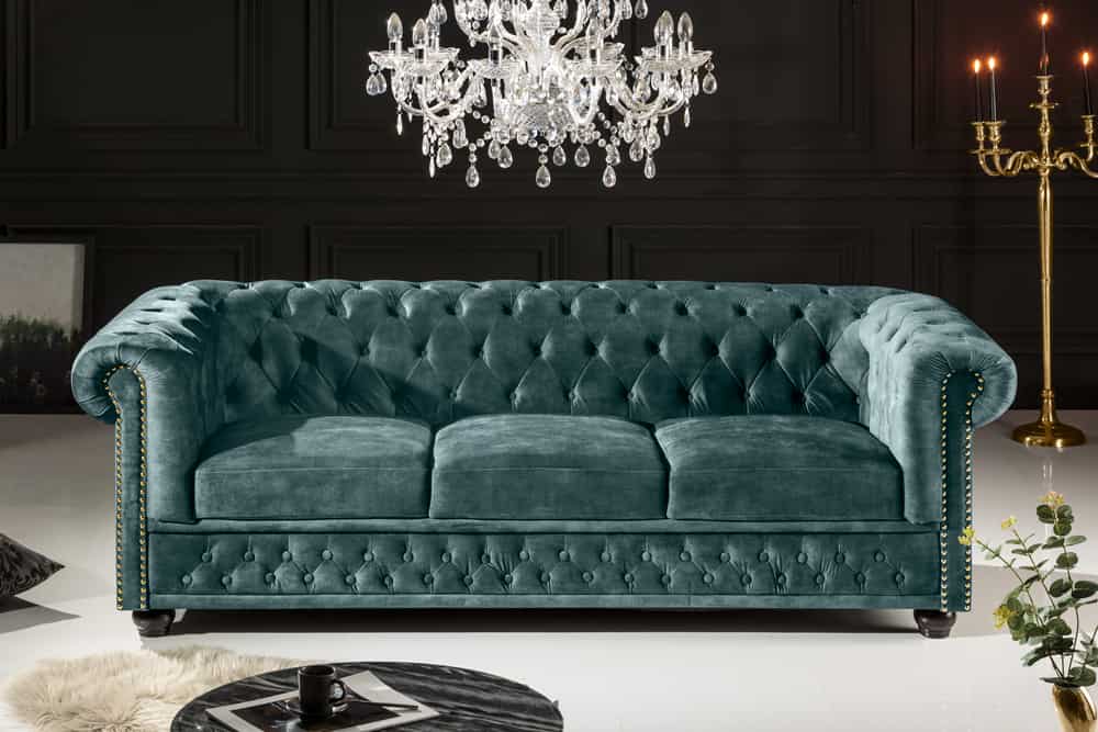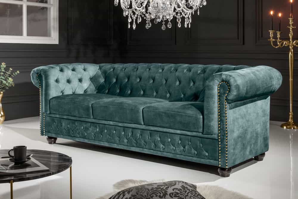 Chesterfield 3-zitsbank in petrol kleur – Stijlvol, gezellig en een echte blikvanger!