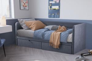 Moderne slaapbank met praktische opbergladen! Een praktische tijdloze slaapbank inclusief meegeleverde lattenbodem. De bank is voorzien van stoffen bekleding. De totale afmetingen van de bank zijn b x d x h: 215 x 89,5 x 82 cm Overige informatie: Wordt geleverd inclusief lattenbodem Wordt geleverd exclusief matras Ligvlak LxB 200 x 90 cm Hoogte rugleuning 35 cm Kleurcombinatie : Bekleding grijs Materialen: bekleding: stof