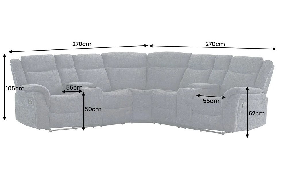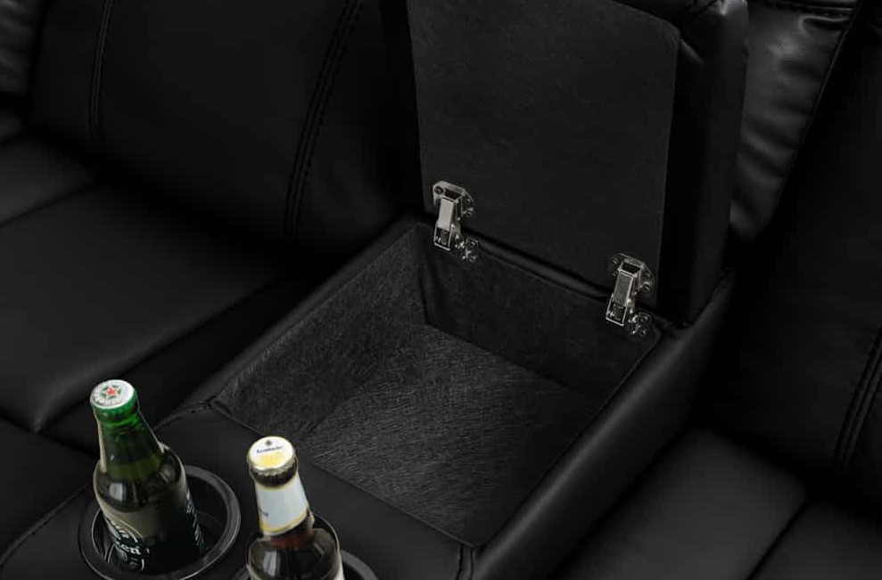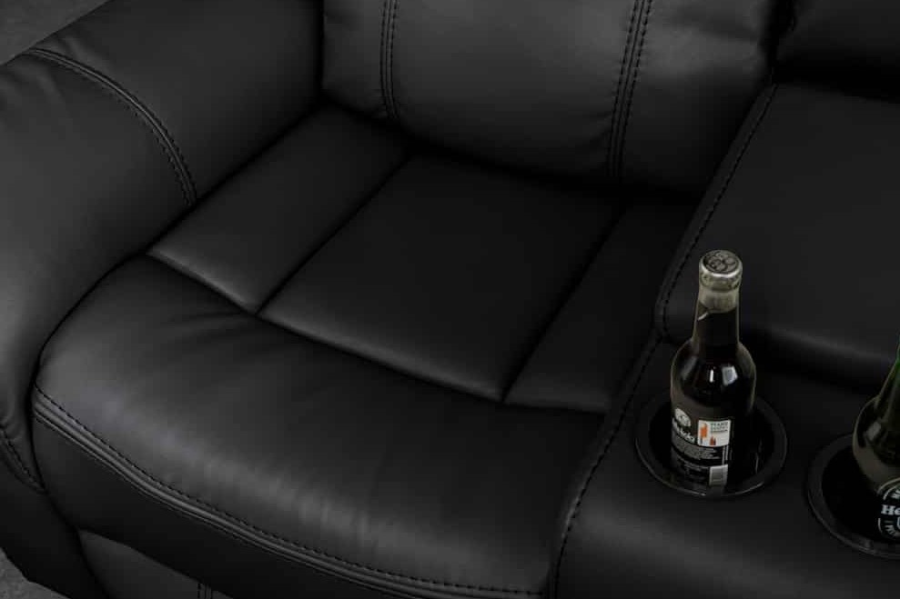 De twee buitenste stoelen kunnen comfortabel worden aangepast aan de ontspanningsfunctie en bieden zo pure ontspanning na een lange dag. Praktisch en goed doordacht: Tussen de stoelen vind je geïntegreerde opbergvakken en bekerhouders waarin snacks, afstandsbedieningen of drankjes kunnen worden geplaatst. Dit maakt elke filmavond of serie tot een echte ervaring.