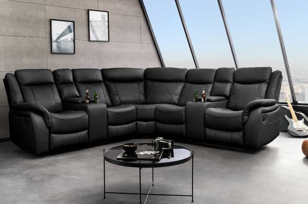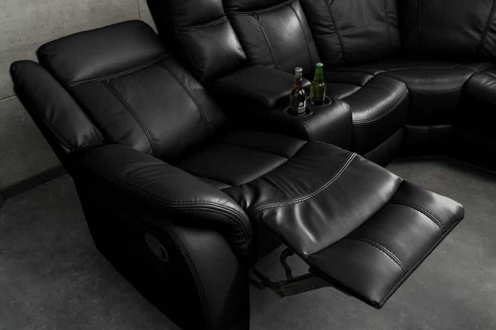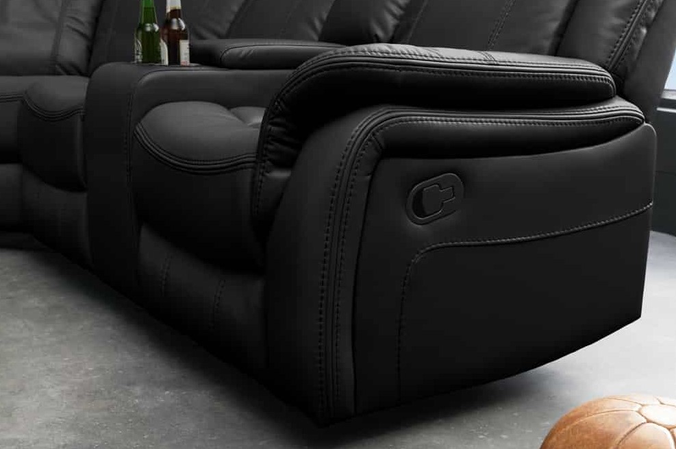 Bioscoop hoekbank zwart kunstleder 5-zits