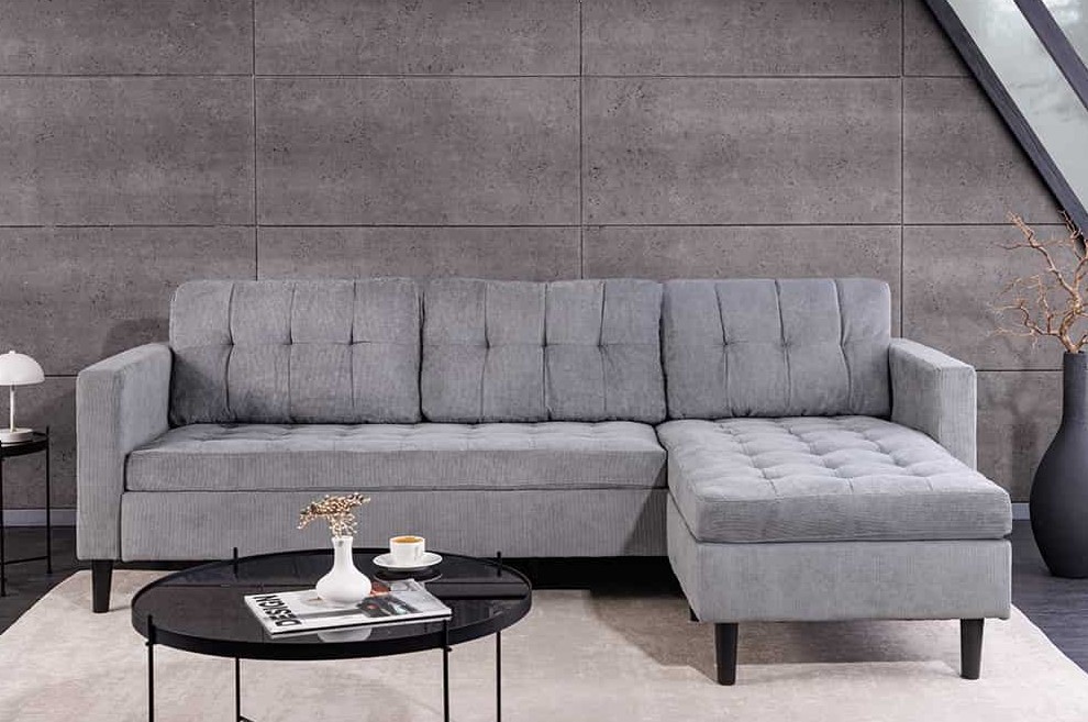 Hoekbank Stockholm grijs cordstof 220 cm universele ottomane