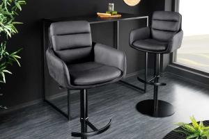 Imposante barkruk met 360°draaibare zitting. Deze barkruk trekt meteen de aandacht van iedereen. Bijzonder comfortabel door gebruik van pocketvering in de zitting. Luxe materiaalcombinatie van fluweel en geweven stof. De afmeting van deze barkruk is b x d x h: 54 x 59 x 110 cm Overige informatie en afmetingen: Zithoogte: 77 cm Zitbreedt 44 cm Zitdiepte 40 cm Hoogte armleuningen 90 cm Maximale zitbelasting 120 kg Verkrijgbaar in de kleur: Antraciet Materia...