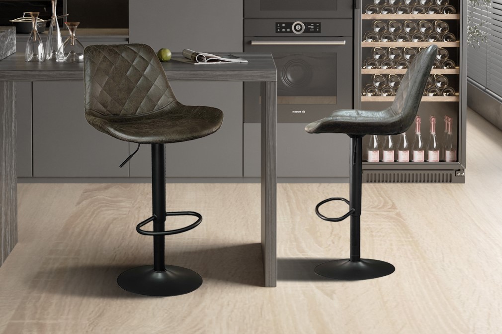 Deze trendy barkruk in industriële woonstijl is voorzien van donkerbruine kunstlederen bekleding met een comfortabel ergonomisch vormgegeven rugleuning. Het onderstel is afgewerkt in zwart poedercoating. De combinatie van materialen geeft deze barkruk een stoere en moderne industriële uitstraling.