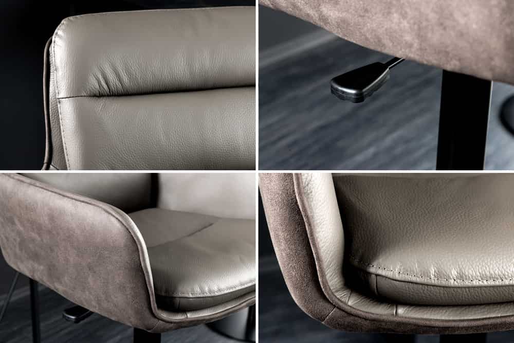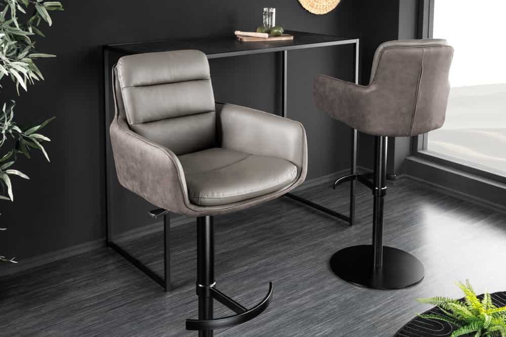 Moderne barkruk met hoogwaardige écht lederen bekleding op de zitting en rugleuning voor een goed zitcomfort. De subtiele nuances van de taupe tint zorgen voor een warme en uitnodigende sfeer. Met geïntegreerde armleuningen voor extra comfort biedt de stoel een uitstekende zitervaring. De 360° rotatiefunctie zorgt voor moeiteloze beweging, terwijl de stevige constructie zorgt voor duurzaamheid en betrouwbaarheid. De barkruk is in hoogte te verstellen door middel van een gaslift.