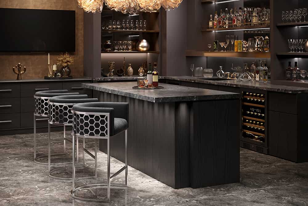 Elegante barkruk – grijs fluweel ontmoet zilver RVS!