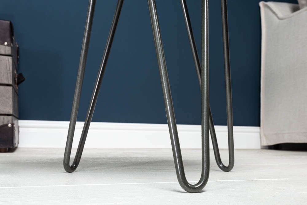 Moderne ronde bijzettafel van acacia hout gecombineerd met metalen pootjes.