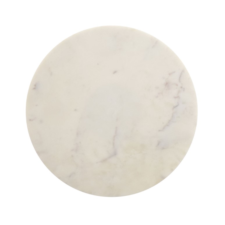 Moderne ronde bijzettafel met cilindervormig onderstel gecombineerd met tafelblad van écht massief marmer. Ieder tafelblad is een natuurproduct en heeft hierdoor unieke kleurpatronen en kleuraderen.