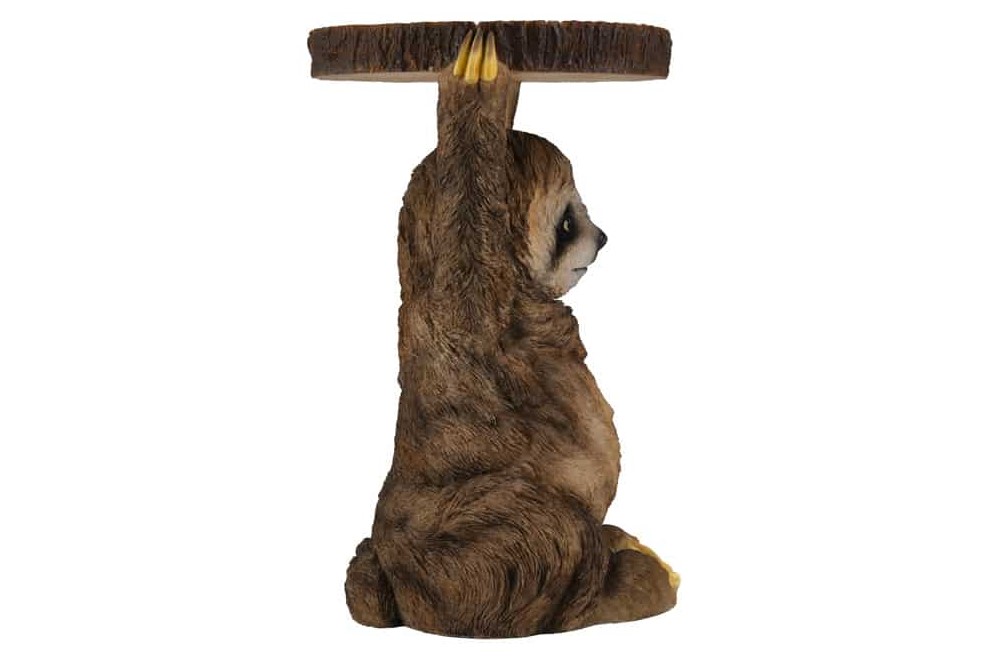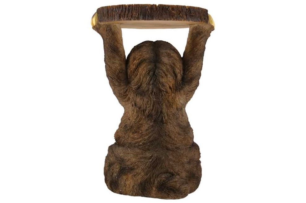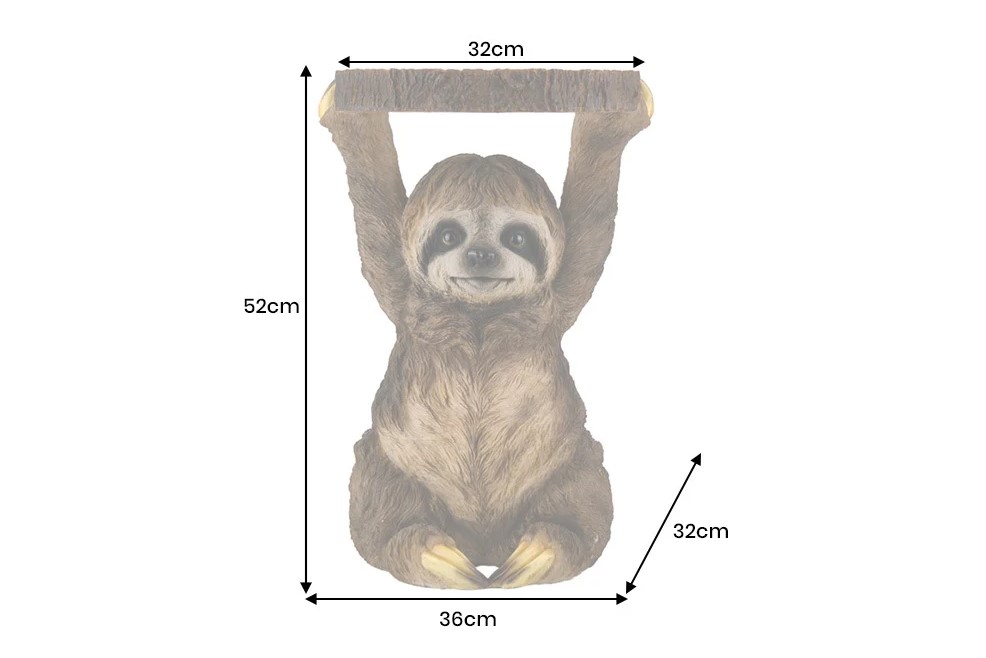 Charmant bijzettafeltje met een liefdevol ontwerp! Deze bijzettafel in de vorm van een luiaard inspireert met een buitengewoon, sympathiek ontwerp dat meteen een goede sfeer verspreidt. Het rijk gedetailleerde luiaardfiguur in bruine en grijze tinten houdt het ronde tafelblad in een natuurkleurige uitstraling ontspannen boven het hoofd. Het resultaat is een decoratief meubelstuk dat functionaliteit en beeldhouwkunst op een bijzondere manier combineert.
