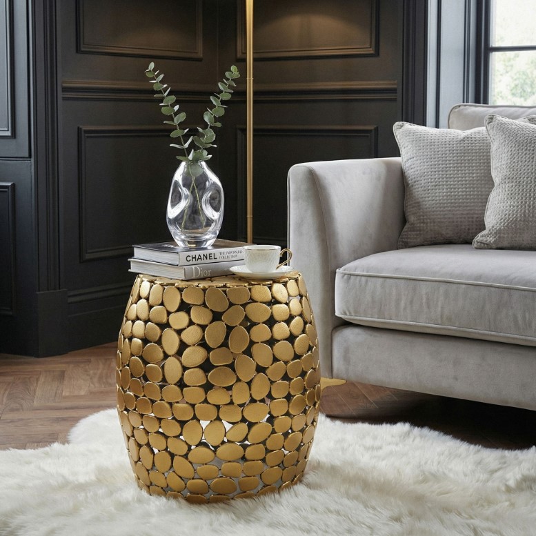 • Deze bijzettafel goud staat niet opgesteld in onze showruimte