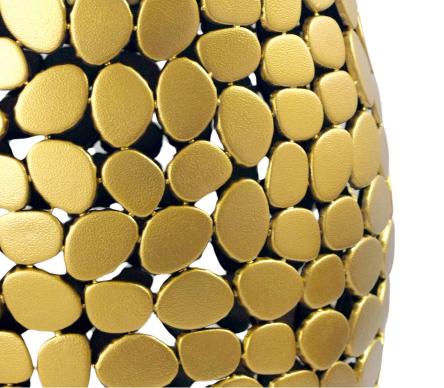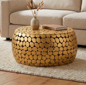 Moderne ronde  design bijzettafel goudkleurig voorzien van mooie metaalstructuur.