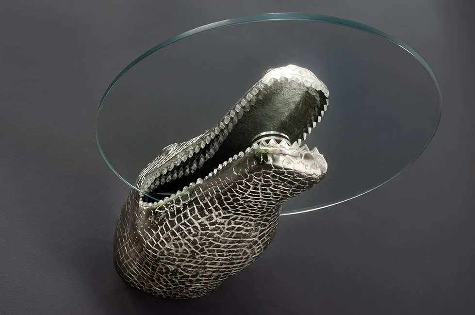 Hangende design bijzettafel krokodil zilver 61 cm