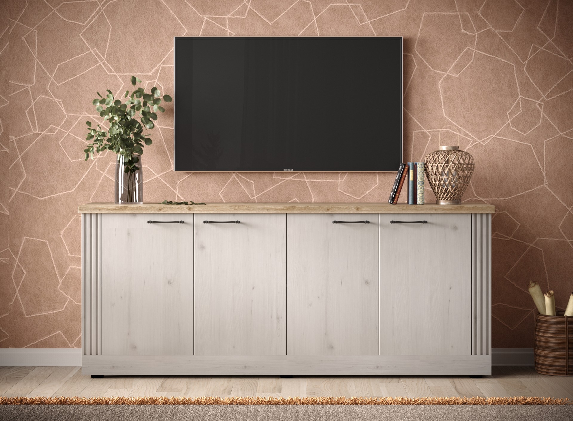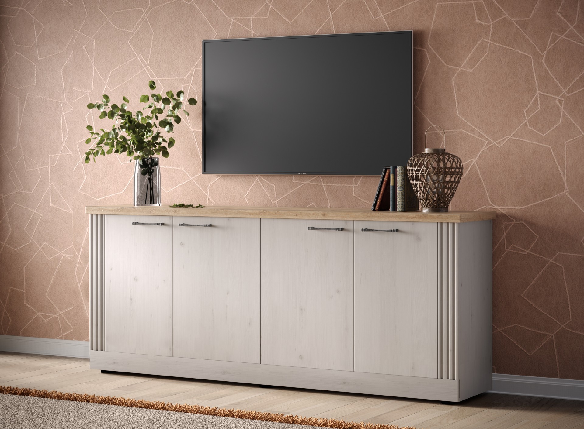 dressoir landelijk wit met eiken kleur bovenpaneel 211 cm