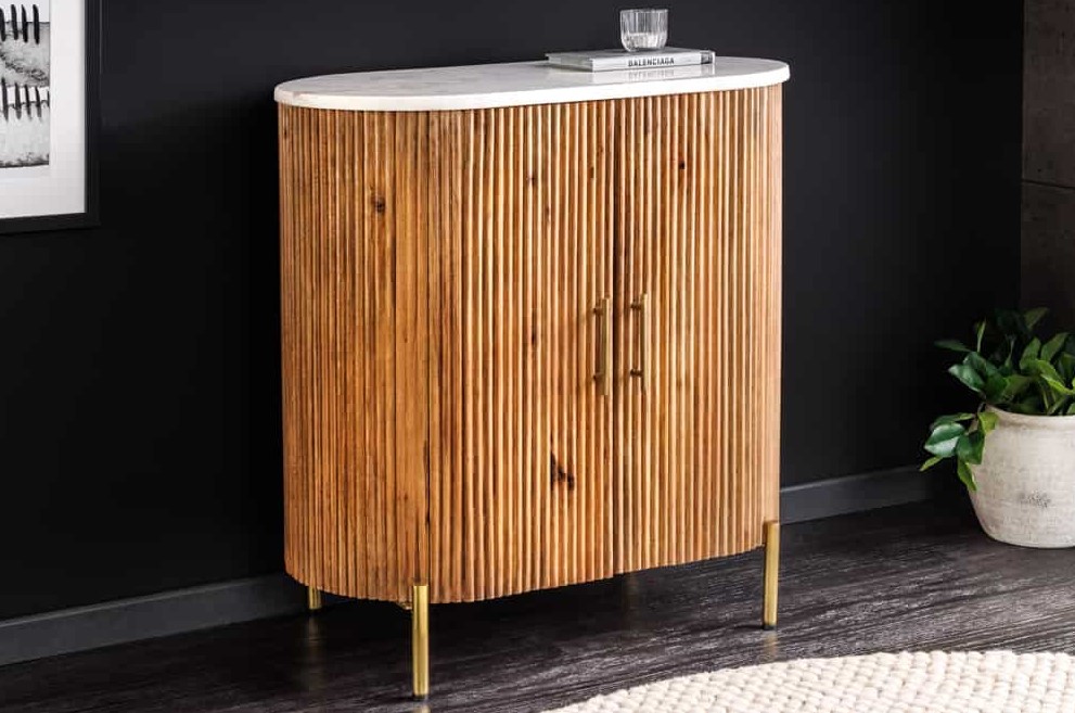 Dressoir mangohout 70 cm met marmer bovenpaneel