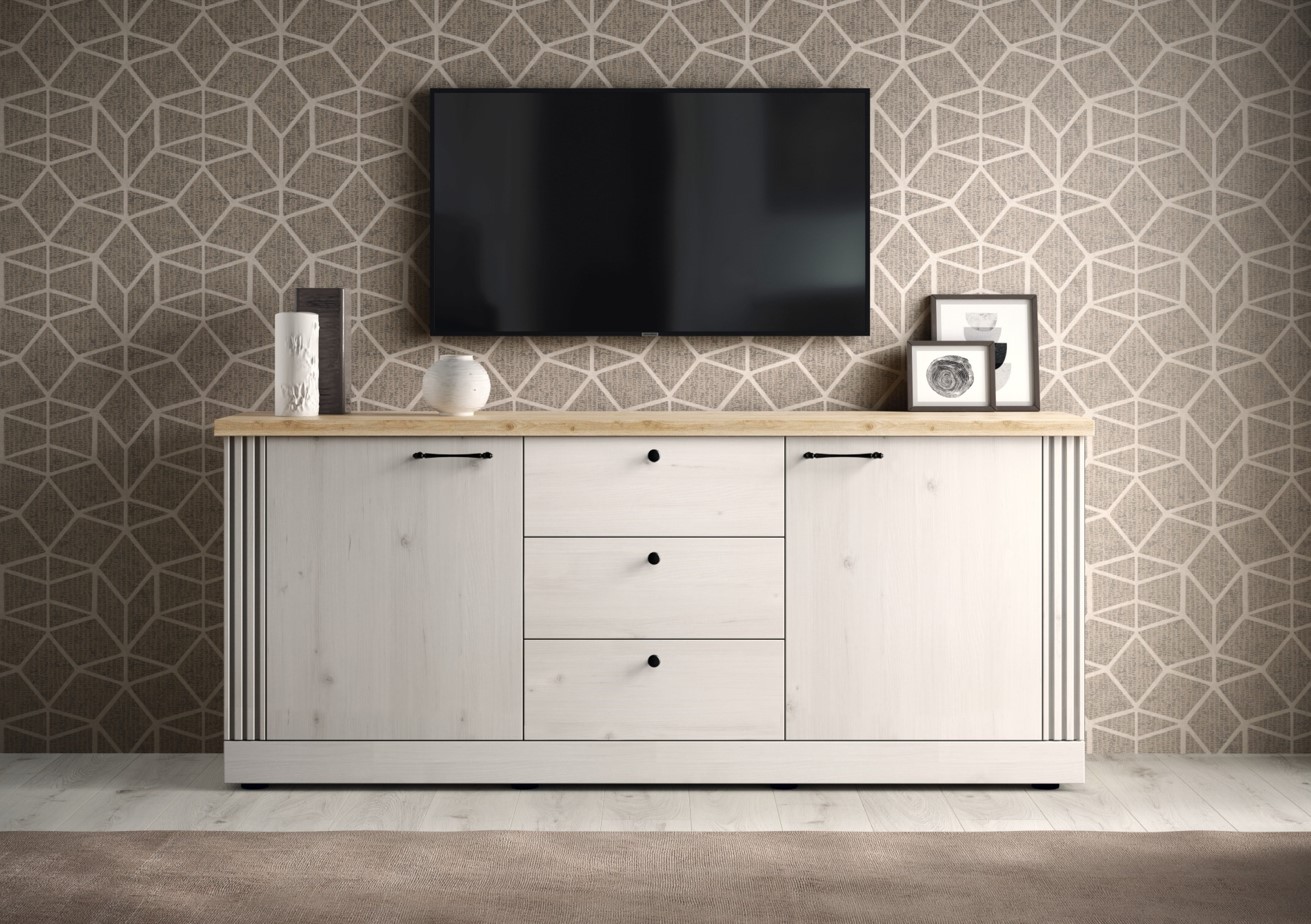 landelijk dressoir wit met eiken kleur bovenblad 211 cm