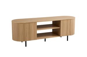 Modern ovaal vormgegeven dressoir met trendy ribbeldesign. Het dressoir heeft vier deuren die voorzien zijn van zwarte handgrepen. Achter de deuren is er veel opbergruimte door middel van vier grote opbergvakken.