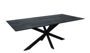 Eetkamertafel in stoere look met robuust tafelblad gecombineerd met metalen poten. Deze eetkamertafel leisteengrijs is verkrijgbaar in de afmeting LxBxH: 189 x 88 x 78 cm Kleurcombinatie: Tafelblad donkergrijs (leisteen) Poten zwart Materialen: Tafelblad van meubelplaat voorzien van krasbestendige melamine toplaag Poten van metaal