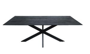 Eetkamertafel van mangohout gecombineerd met matrix onderstel. Het tafelblad heeft een gladde afwerking waardoor de tafel een mooie uitstraling krijgt. Het tafelblad is gezandstraald waardoor het in gebruik beter bestand is tegen bijvoorbeeld gebruikskrasjes. Deze tafel is leverbaar in de afmeting lxbxh: 300 x 110 x 76 cm Overige afmetingen: Dikte tafelblad 5 cm met facetrand van 2 cm Kleurcombinatie: Tafelblad: zwart Poten zwart Materialen: Tafelblad gezandstraald. Het hout wordt gezandstraald wat inhoudt d...