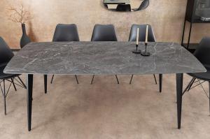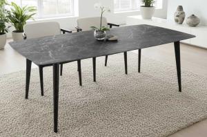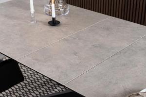 Moderne rechthoekige uitschuifbare eettafel met tafelblad van keramiek in de kleur grafietgrijs. De tafel is voorzien van zwart metalen onderstel. Deze stijlvolle eettafel wordt het middelpunt van uw eethoek! Het moderne tafelblad van hoogwaardig Italiaans keramiek in grafietgrijs maakt niet alleen indruk met zijn exclusieve design, maar ook met zijn buitengewone weerstand. Het zacht gestructureerde oppervlak geeft het een bijzonder gevoel en zet elegante accenten. Deze eettafel heeft de ca. afmeting breedte x diepte x hoogte: ...
