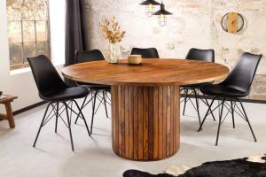 Deze ronde eettafel van massief acaciahout is een echte blikvanger voor in je huis. De kegelvormige zuil is het hart van de tafel en zorgt voor goede stabiliteit. Dankzij het lattenontwerp oogt de zuil ruimtelijk en origineel. Deze ronde eettafel heeft een diameter van 120 cm en biedt plaats aan 4 personen zodat je comfortabel kunt eten, praten en lachen met vrienden en familie. De natuurlijke houtstructuren en de ruimtelijke sfeervolle vorm van de tafel geven het een bijzonder karakter. Deze tafel past perfect in vele woonstijlen en...