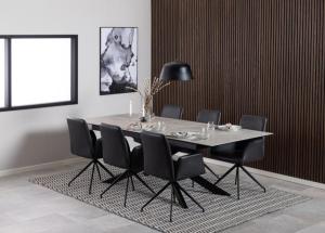 Ben je nog op zoek naar een praktische uitschuifbare eettafel die allesbehalve alledaags is? Dan is deze imposante eettafel misschien wel iets voor jou. Het tafelblad is hitte en krasbestendig. Het heeft een groot tafelblad met toplaag van hoogwaardig keramiek in een grijze look, dat is aangebracht op een stabiel blad van veiligheidsglas. Het tafelblad is eenvoudig groter te maken d.m.v. een synchroon uitschuifsysteem. Het oppervlak van het tafelblad is licht opgeruwd om een natuurlijke look en feel te bereiken. Het metalen matrix on...