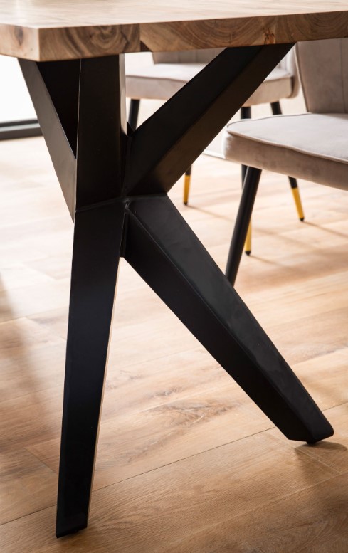 Deze strak moderne eetkamertafel is voorzien van een 4cm dik acacia tafelblad en wordt gecombineerd met een metalen zwart design onderstel. Het metalen frame is netjes afgewerkt met een zwarte poedercoat finish. Het tafelblad is afgelakt met een blanke lak tegen vocht en voor een natuurlijke uitstraling.