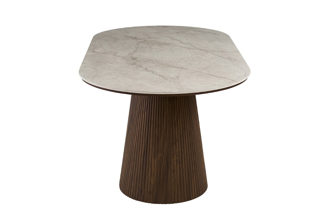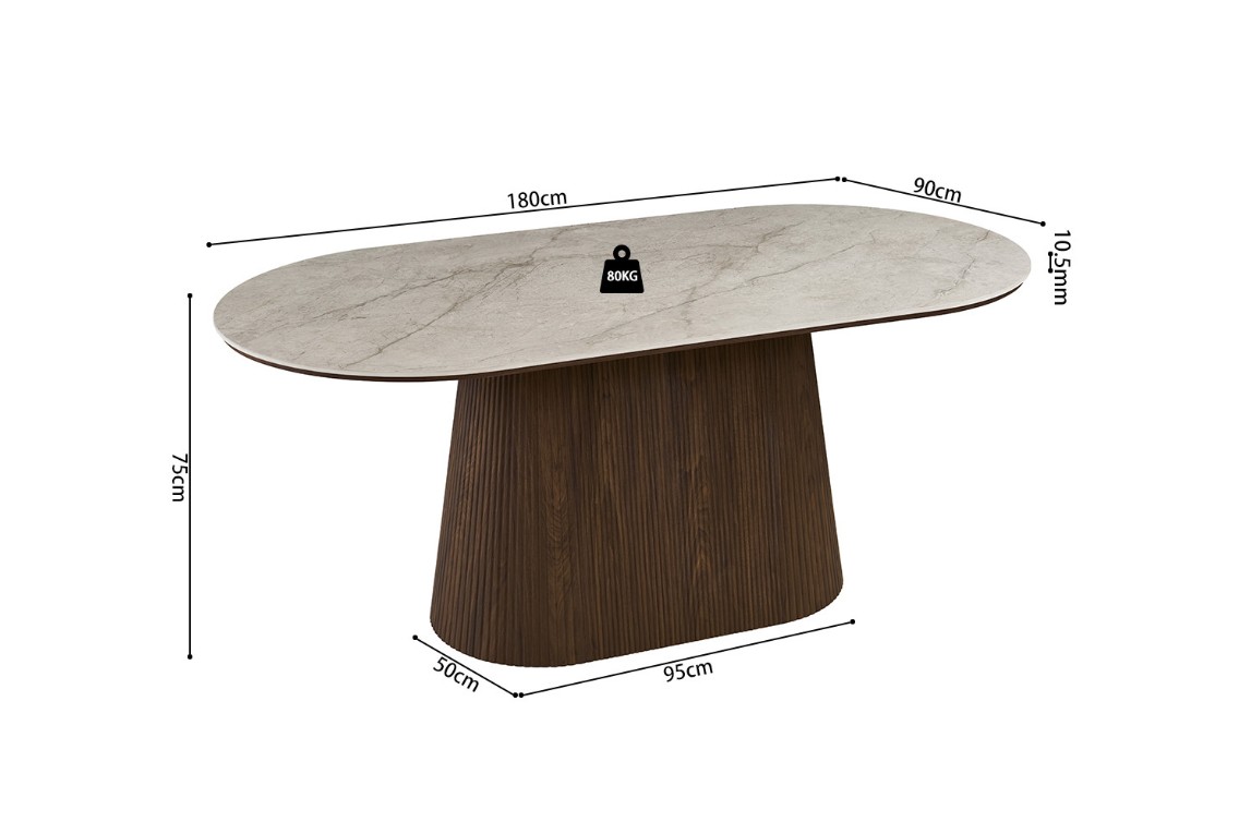 Ovale tafel donkerbruin met beige tafelblad 180 cm