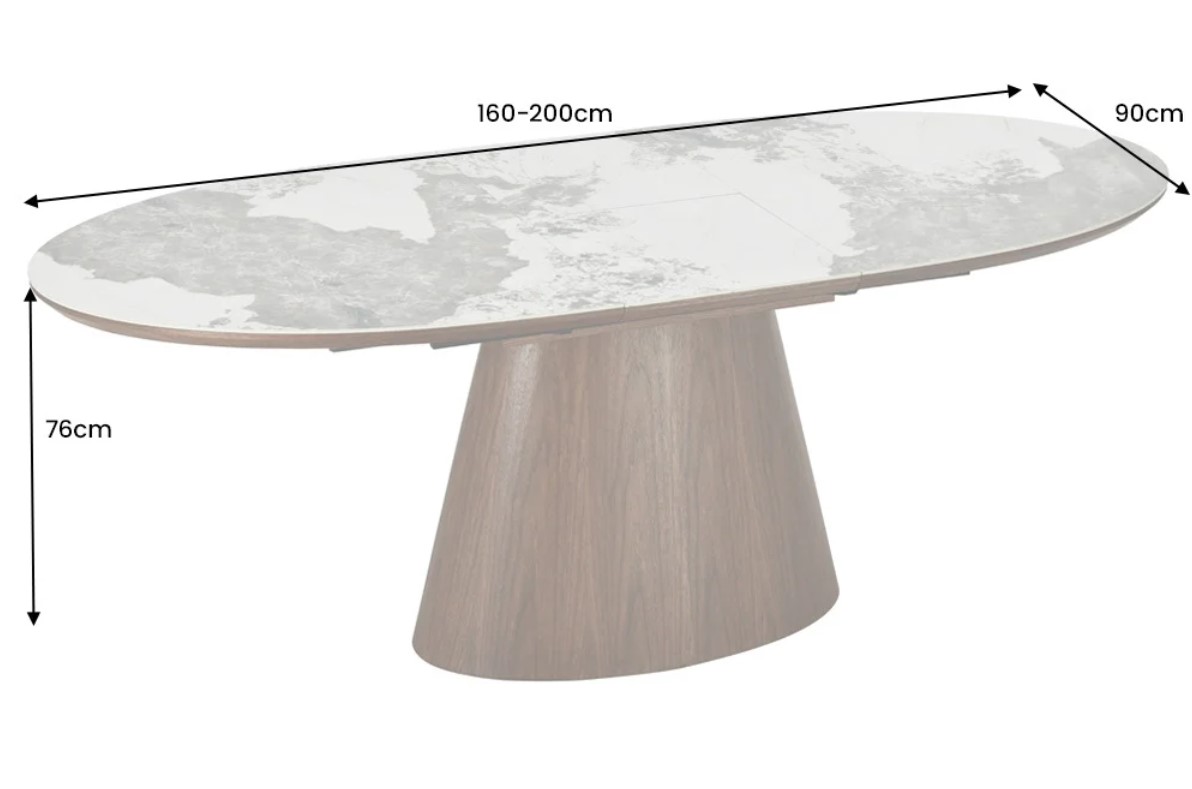 Ovale uitschuifbare tafel walnoot taupe keramiek 160-200 cm