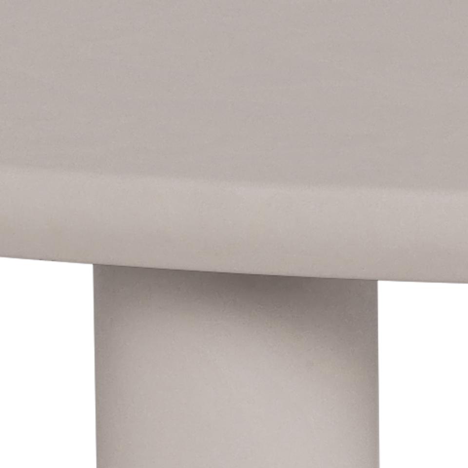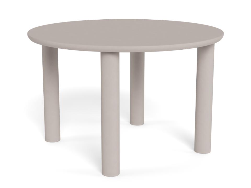 Ronde eetkamertafel van MDF in de kleur grijs gecombineerd met stevige ronde tafelpoten. Combineer de tafel met de andere meubelen uit dit woonprogramma.