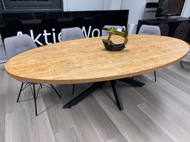 • Een ovale tafel uit dit programma staat opgesteld in onze showruimte