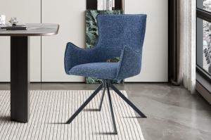 Deze stoere 180 graden draaibare eetkamerstoel met automatic return en armleuningen biedt een uitstekend zitcomfort is een aanwinst voor uw interieur. De combinatie van stoffen bekleding en zwarte metalen poten geven deze stoel een mooie luxe uitstraling. Afmetingen: Hoogte: 88 cm Breedte: 57,5 cm Diepte: 60 cm Overige afmetingen: Zithoogte 49 cm Zitbreedte 44,5 cm Zitdiepte 46,5 cm Hoogte armleuningen 66,5 cm Kleurcombinatie: bekleding blauw poten zwart Materialen: Bekleding van stevige stof Poten van met...