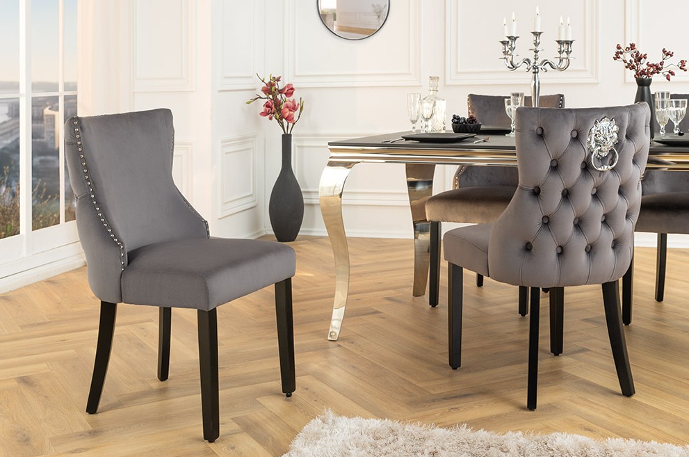 • Kenmerken: barock stoel grijs fluweel