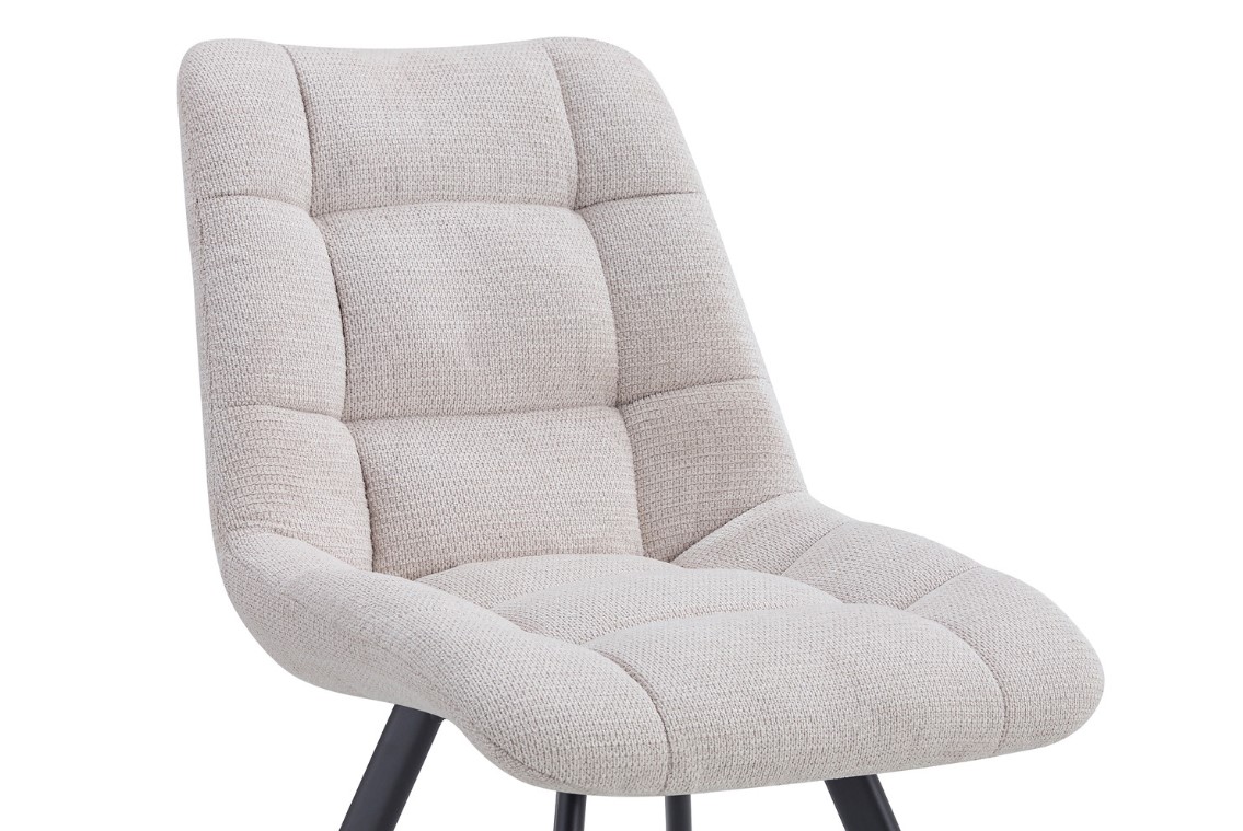 Eetkamerstoel beige stof met stikselmotief