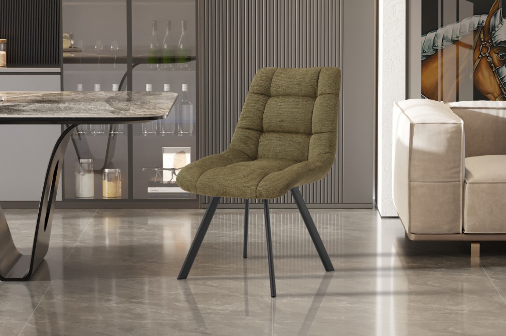 Moderne eetkamerstoel met een goed zitcomfort en een opvallende mooie uitstraling door de aanwezige blokmotief stiksels in de zitting en rugleuning.