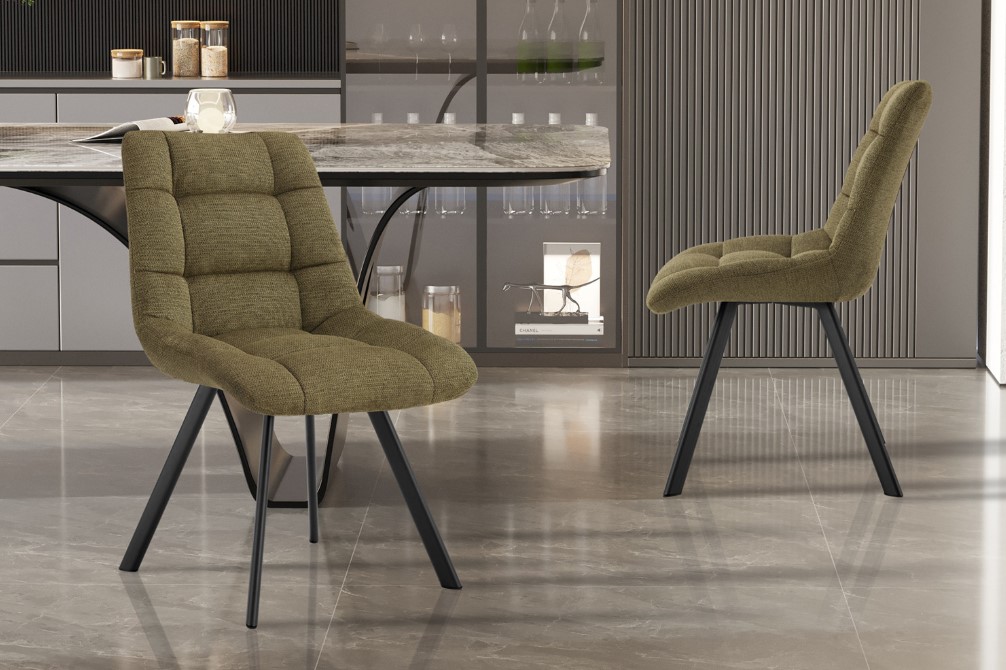 eetkamerstoel groen met blokmotief stiksels