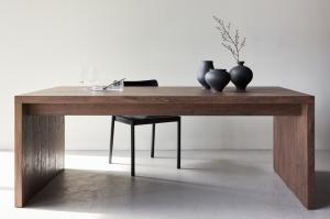 Moderne eetkamerstoel met zwarte poten gecombineerd met zachte fluwelen (velvet) bekleding.