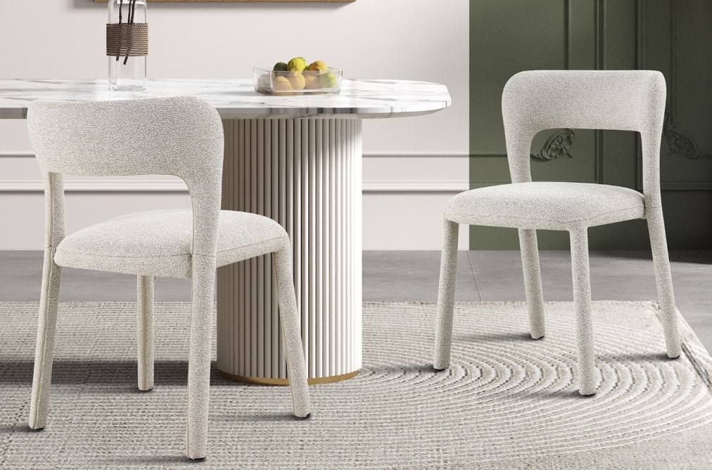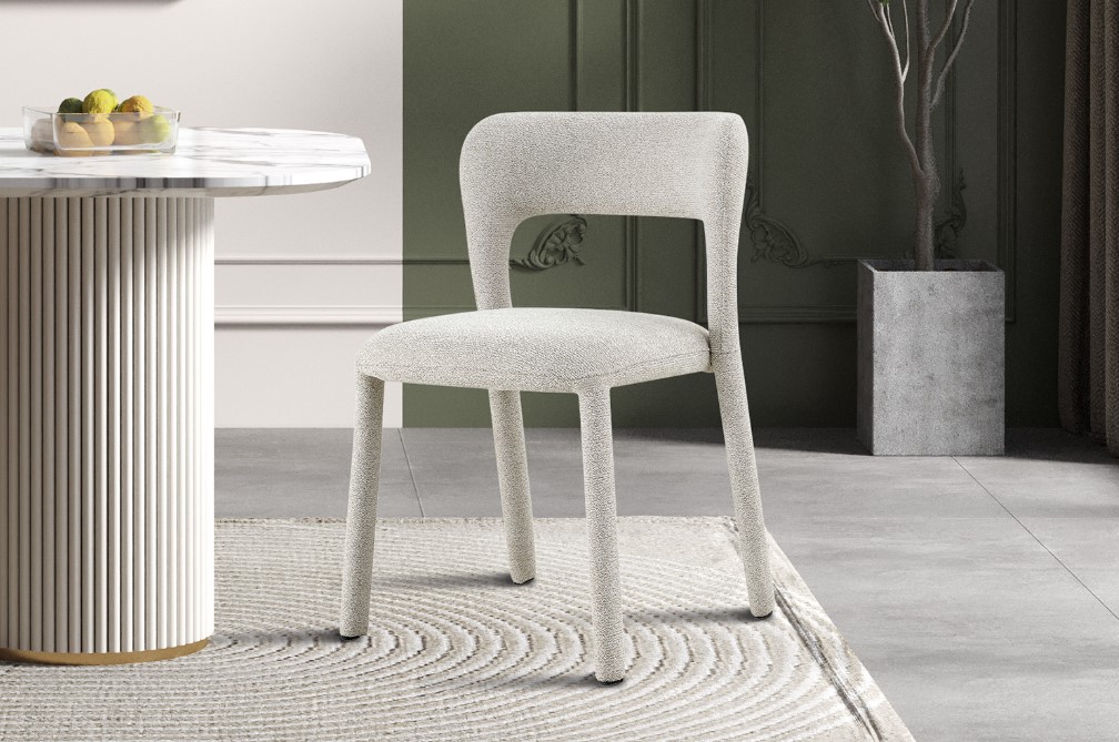 De complete stoel heeft een stoffen bekleding op de zitting en de poten. Dit geeft deze stoel een mooie luxe uitstraling.
