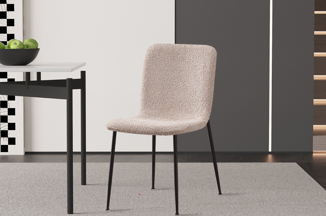 Eetkamerstoel beige bouclé stof