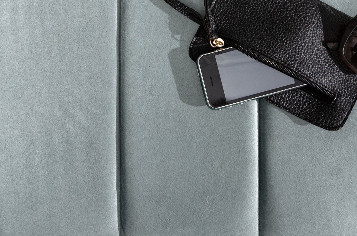 Moderne sfeervolle zitbank / halbank met zacht zitkussen met velvet stof gecombineerd met zwart metalen onderstel.