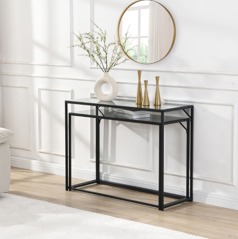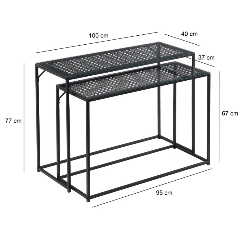 sidetable set zwart metaal met glas 100 cm