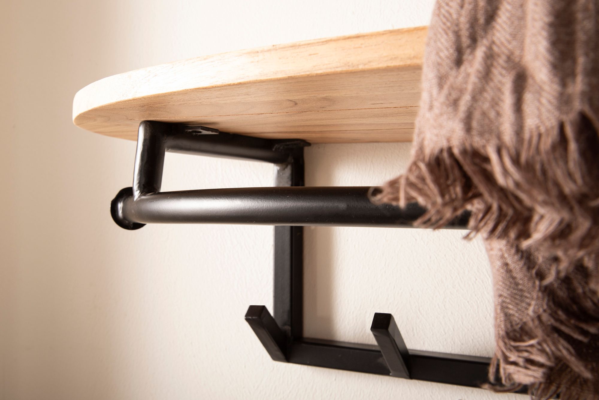 Tijdloze kapstok in industriële woonstijl. Deze wandkapstok met 8 haken, hoedeplank en kledingstang zorgt voor een complete kapstok die voldoende ruimte biedt voor jassen, tassen, sjaals etc.