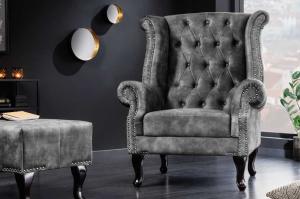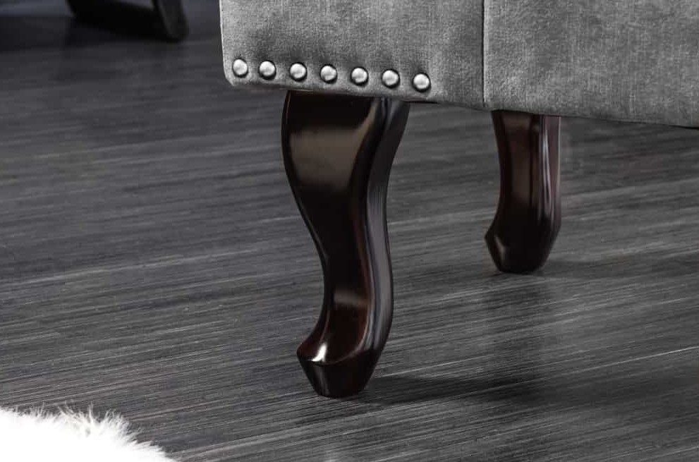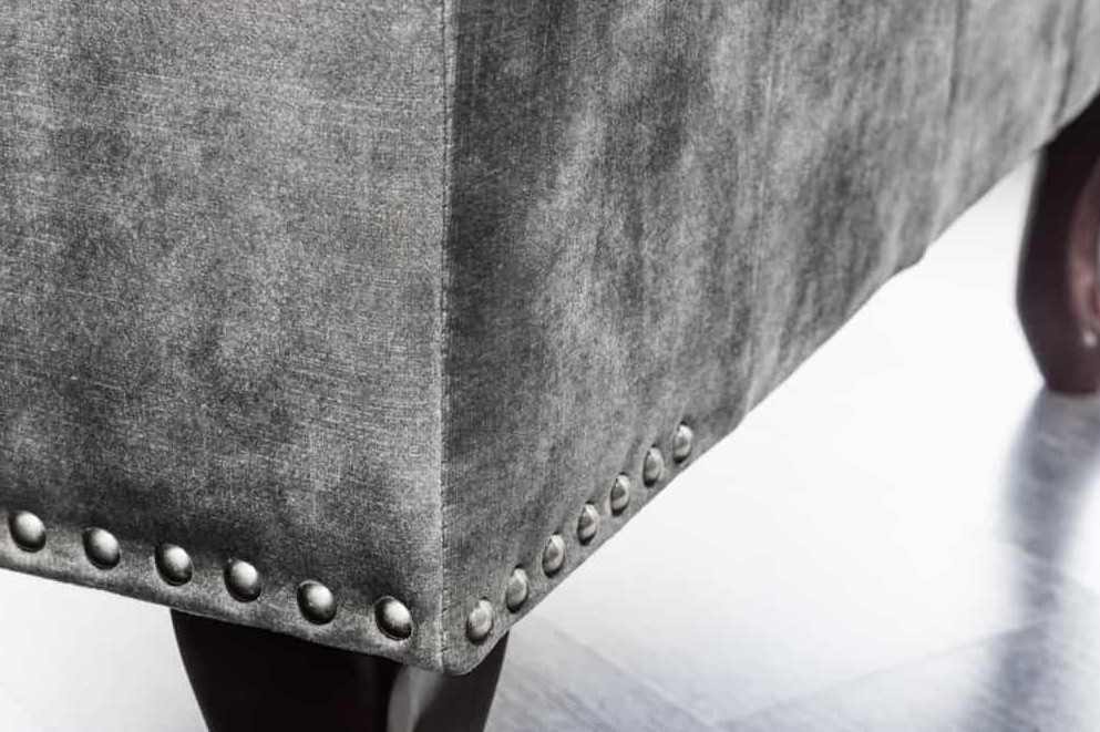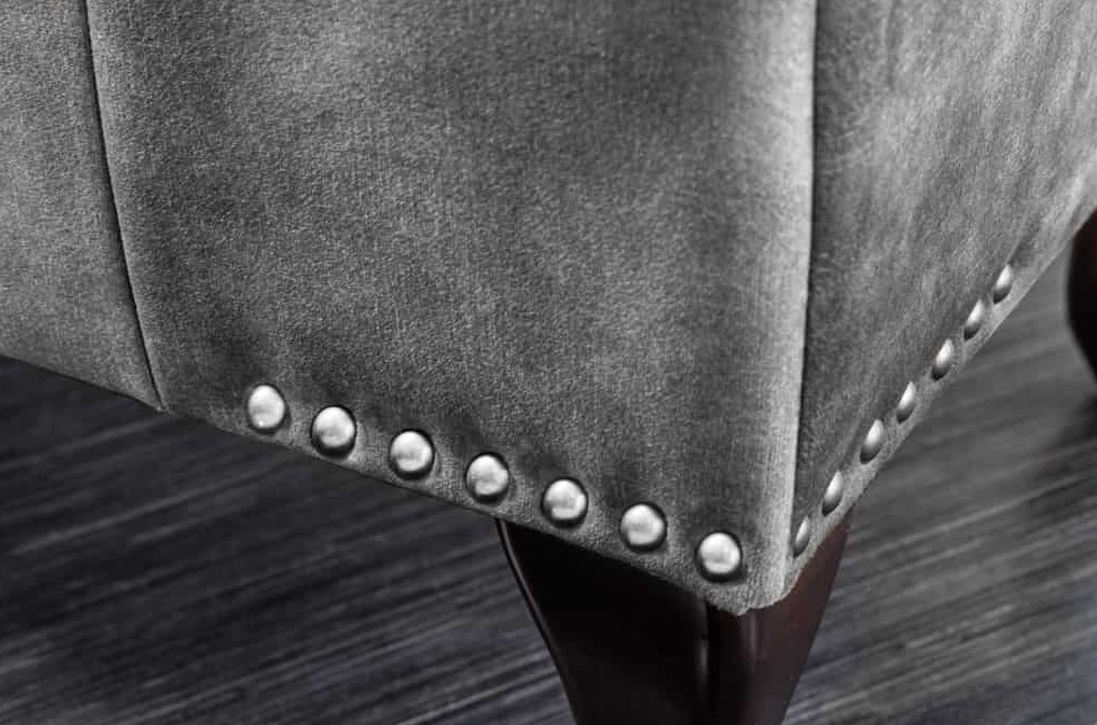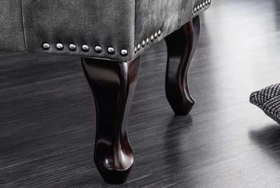 Moderne hocker met gecapittonneerde zachte fluwelen bekleding gecombineerd met houten poten.