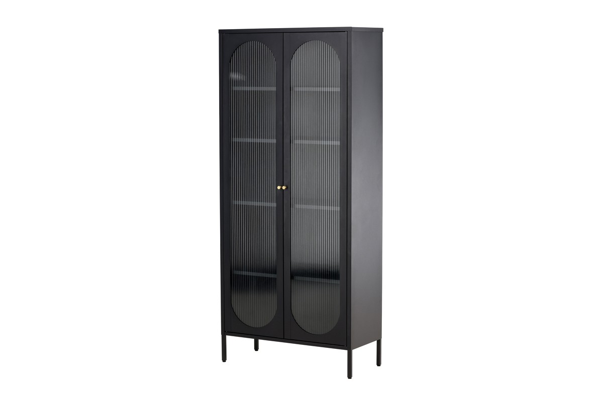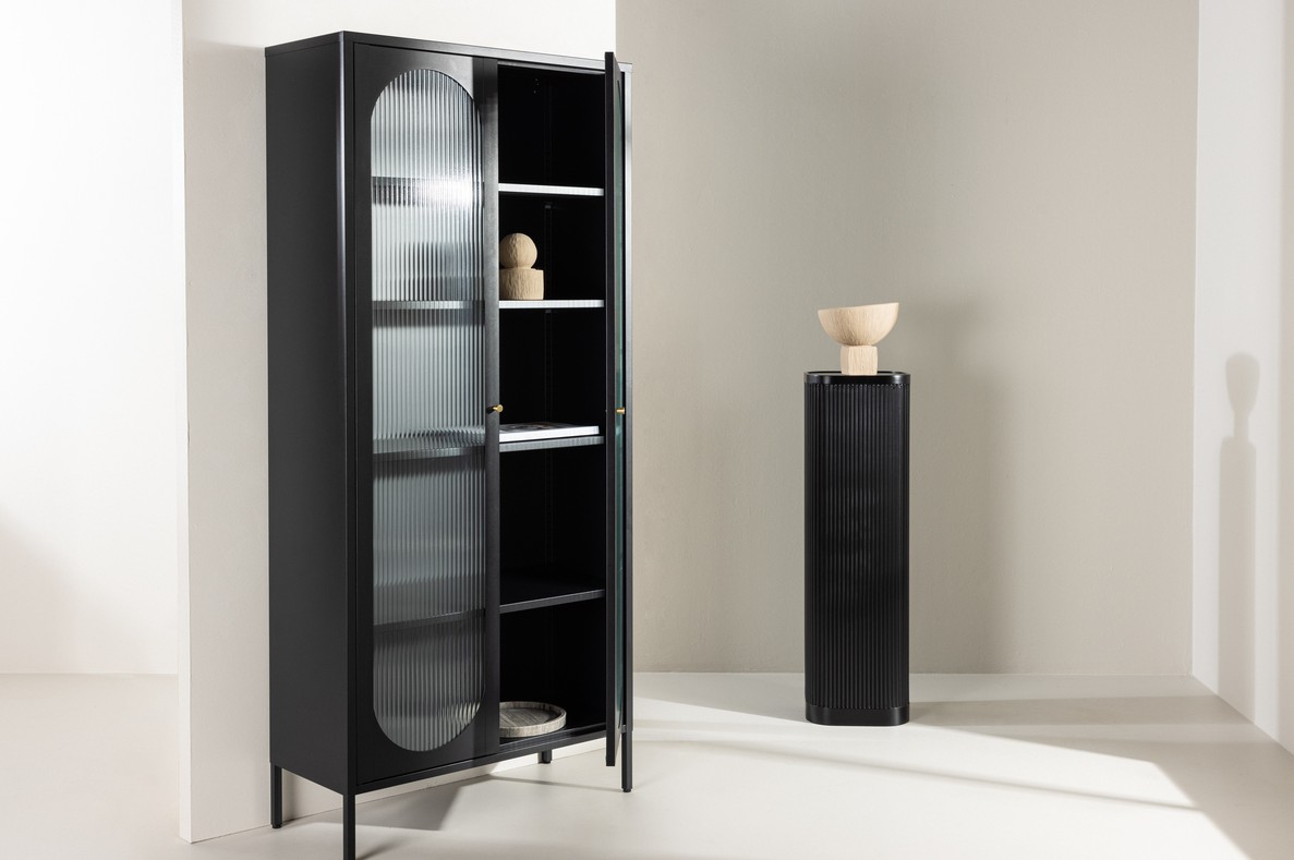 hoge vitrinekast zwart metaal 180 cm