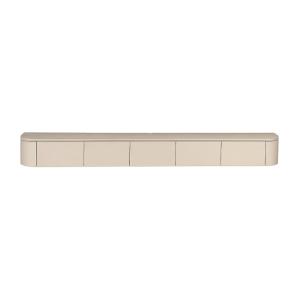 Modern zwevend greeploos tv meubel met rond vormgegeven hoeken en kabelopening in het bovenpaneel. Het meubel is gemaakt van massief mangohout en voorzien van vijf kleppen met hoogwaardige telescoop sluitsystemen. Bij dit meubel worden ook pootjes meegeleverd om er een staand model van te maken. Let op: wanneer u het meubel aan de muur bevestigd, is hij uitsluitend geschikt voor tv’s met een muurbevestiging. Het meubel is afgewerkt met een lak in de kleur zand/beige. Dit meubel is verkrijgbaar in de afmeting bxdxh: 280Â...