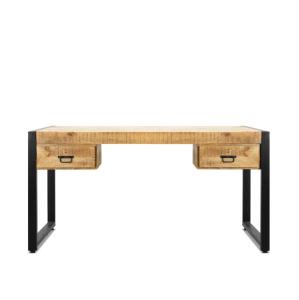 Modern sfeervol bureau van mangohout gecombineerd met metalen poten. Het bureau is voorzien van praktische lade en opbergruimte achter een deur.  Dit bureau is bestelbaar in de afmeting bxdxh: 145 x 58 x 74 cm Kleurcombinatie: bruin naturel / zwart Materiaal: mangohout / metaal