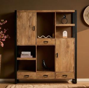 De Opbergkast Sturdy mango metaal is een moderne trendy opbergkast in industriële woonstijl. Deze kast is gemaakt van mangohout gecombineerd met metaal. Een échte blikvanger in uw woonomgeving! De afmeting van deze kast is: 100 x 40 x 200 cm Materialen: massief hout mango / metaal poedercoating Het betreft handgemaakte kasten, iedere kast is uniek en kan noesten, spleten en oneffenheden bevatten. Dit ondersteunt het specifieke karakter van deze kasten. Â