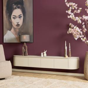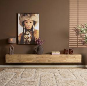 Stijlvol zwevend tv-meubel beigezand, gemaakt van massief mangohout. Het zwevende ontwerp schept een gevoel van ruimte in de woonkamer, waardoor een luchtige en open sfeer ontstaat. Dit tv-meubel is voorzien van twee open vakken en drie greep loze lades. Dit meubel is verkrijgbaar in de afmeting bxdxh:Â 200Â x 35Â x 30Â cm Materialen: massief mangohout Kleur: beigezand
