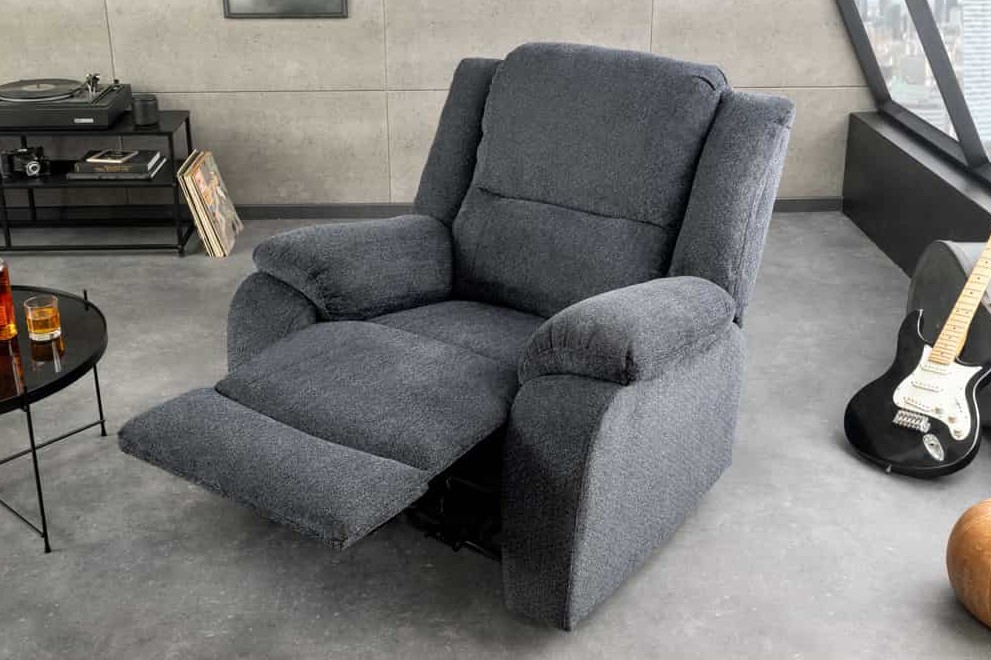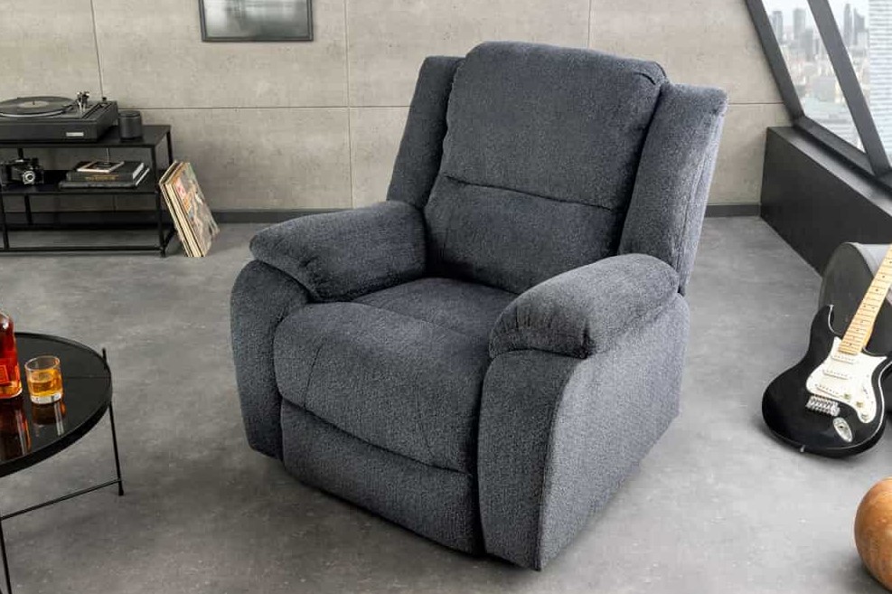 Moderne comfortabele relax fauteuil met verstelbare voetsteun en rugleuning. Deze relaxstoel verandert je woonkamer in een gezellige bioscooplounge. Met de donkergrijze bekleding van stof brengt het modern design en hoog comfort in uw huis. De zitting van de fauteuil kan eenvoudig handmatig worden versteld in een relaxpositie, zodat je je benen en rug optimaal kunt ontspannen. Of je nu een film kijkt, leest of gewoon afwisselt – deze relaxstoel nodigt je uit om op elk moment te ontspannen.