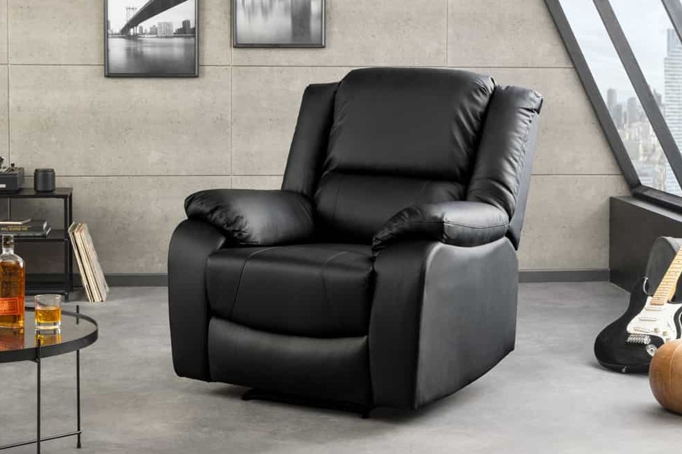 Moderne comfortabele relax fauteuil met verstelbare voetsteun en rugleuning. Deze relaxstoel verandert je woonkamer in een gezellige bioscooplounge. Deze relaxfauteuil combineert comfort met een fraaie moderne uitstraling. De bekleding van zwart kunstleder geeft de fauteuil een moderne uitstraling en maakt hem een echte blikvanger in je woonkamer. De zitting van de fauteuil kan eenvoudig handmatig worden versteld in een relaxpositie, zodat je je benen en rug optimaal kunt ontspannen. Of je nu een film kijkt, leest of gewoon afwisselt – deze relaxstoel nodigt je uit om op elk moment te ontspannen.